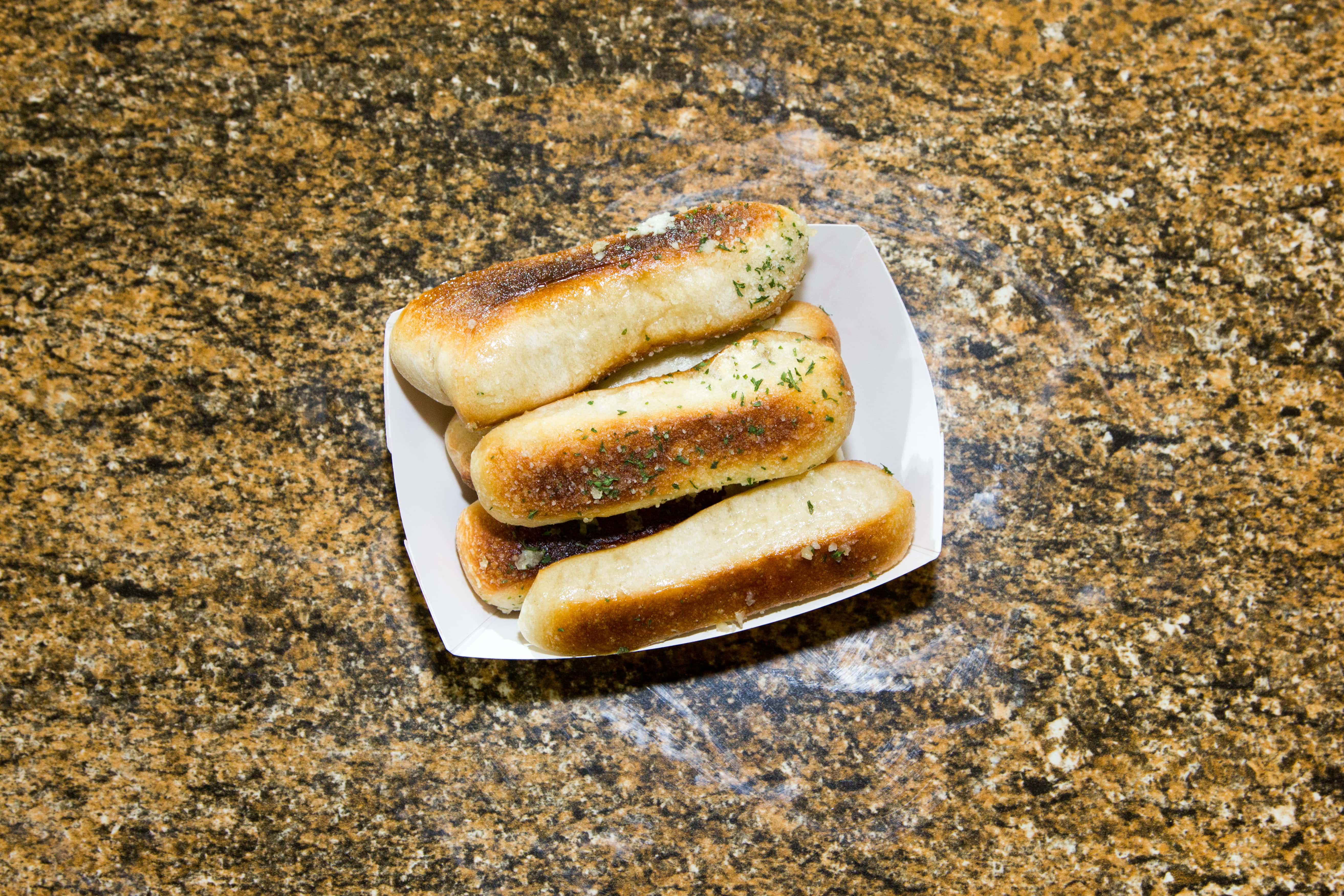 In the US, you would also expect to get them with toppings such as cheese, garlic, and butter. Or even sugar and cinnamon when they're served as a dessert. The size may also vary and be larger than a pencil.
