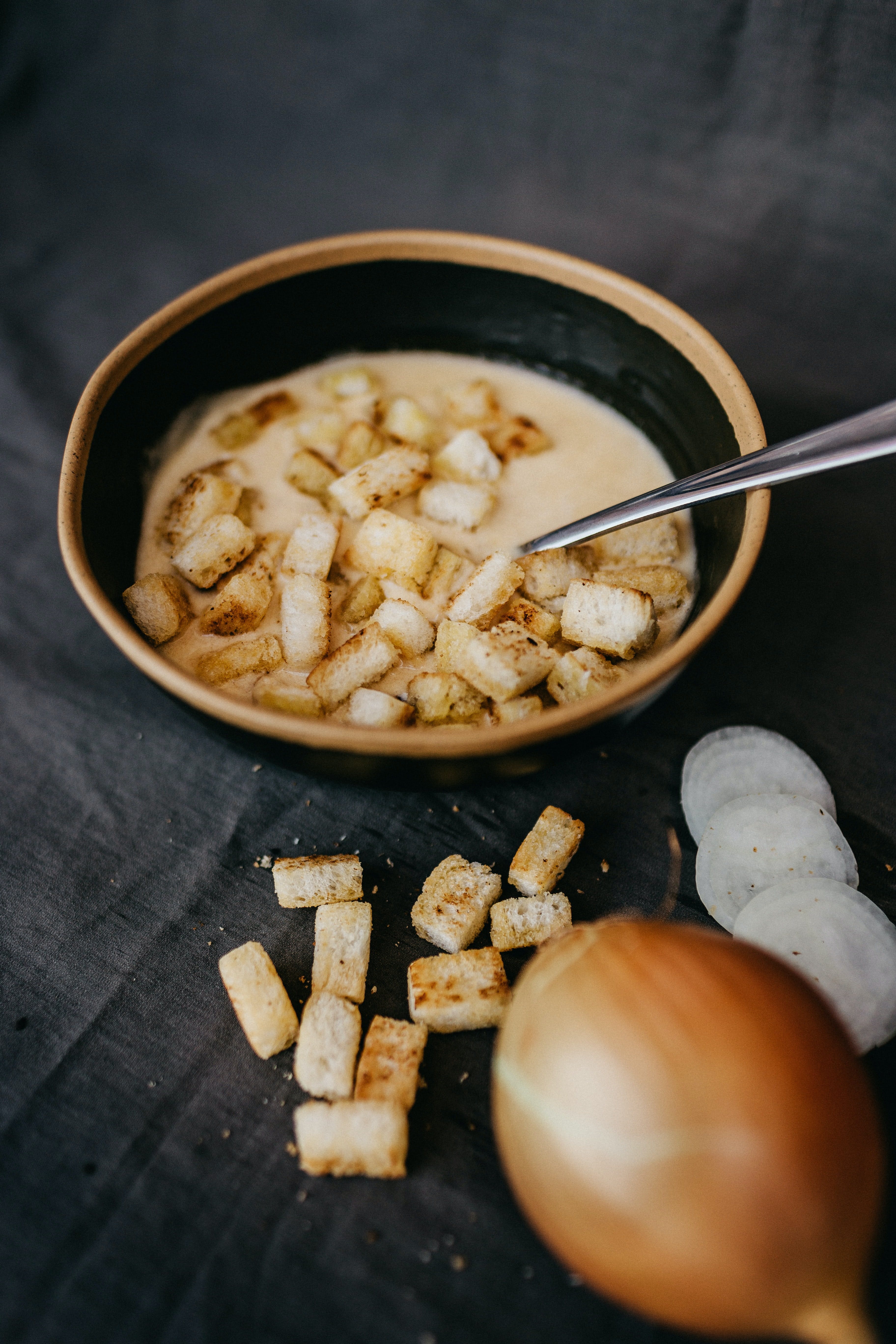 The traditional soup we all love has a fascinating history behind the word "soup." Its origin is from the old French word soupe, which translates to bread soaked in broth. Much like the French onion soup, we all know and love today.