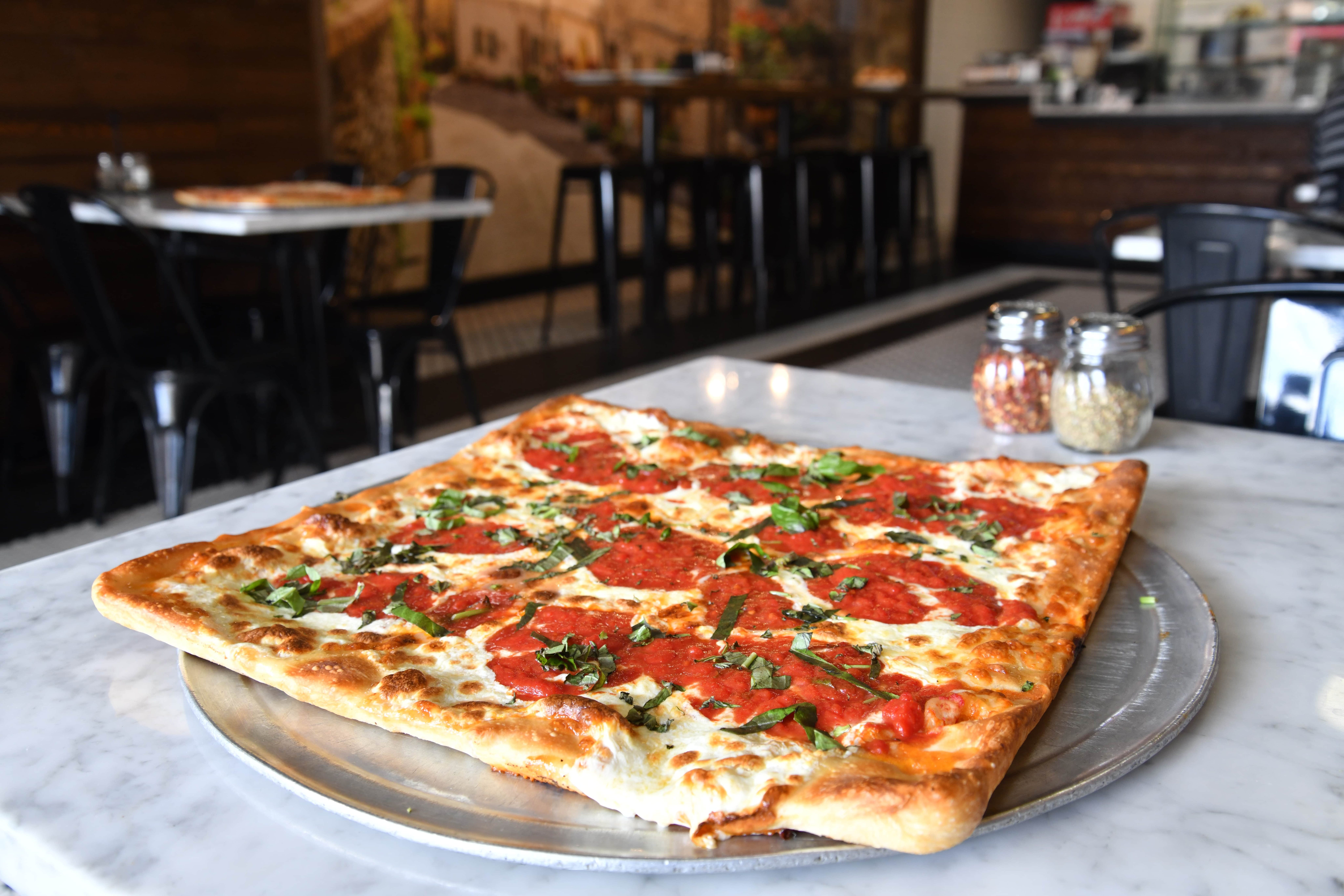 While a sheet pan and a home oven would do, Grandma pizza is also served in restaurants.