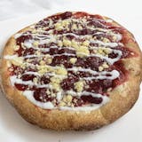 Marinara sauce, light mozzarella, pepperoni, jalapeño, crushed red pepper flakes, topped with hot spicy honey and sprinkled with parmesan cheese