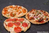 Pita bread, Marinara Sauce, Mozzarella Cheese and 1 topping