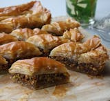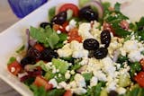 Gyro Meat, Black Olives, Fresh Onions, Roma Tomatoes, Feta Cheese, Mozzarella Cheese, Garlic Sauce