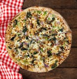 (SLICE EXCLUSIVE ONLY | NOT AVAILABLE OVER CALL) Basil Pesto, Grilled Chicken, Roma Tomatoes, Black Olives, Mozzarella Cheese
