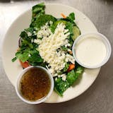 Romaine lettuce, carrots, red cabbage, cucumber, tomato, feta cheese, and your choice of dressing.
