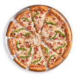 Crispy, golden, pan-baked crust topped with tomato sauce, 100% real cheese, pepperoni, ham, beef and sausage.