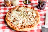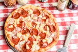 NY style deep dish with mozzarella, pepperoni, sausage, ham, ground beef, and bacon.