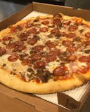 Pepperoni, sausage, mushrooms, onions, green peppers, black olives.