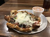 Our pizza dough stretched, rolled and filled with green pepper, onions, mushrooms, sausage, pepperoni, ground beef, mozzarella and parmesan. Served with marinara.
