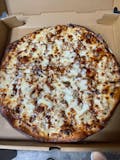 Tender BBQ chicken topped with a generous amount of melted mozzarella and provolone cheeses, all on a 14-inch crispy crust.