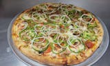Buffalo Chicken Pizza Chicken cutlets, mozzarella, BBQ sauce & ranch