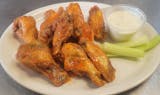 Hot, medium, mild, BBQ, honey hot, honey BBQ. Side of ranch or blue cheese.