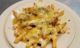 Fries covered with Melted Mozzarella Cheese and Brown Chicken Gravy on the side