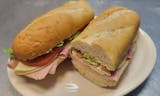 Romaine lettuce, ham, provolone, banana peppers, tomatoes, onion.