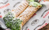 Crisp Sicilian pastry shells filled with sweetened ricotta & chocolate chips, dipped into mixed nuts & covered with powdered sugar.