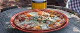 10inch Pizza with fresh mozzarella, seasonal tomatoes, basil and garlic on a pinsa romana crust