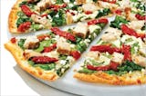 Our artisan thin crust, topped with olive oil, chopped garlic, dairy free mozzarella, grilled chicken raised without antibiotics, fresh spinach, sun-dried tomatoes, zesty herbs.