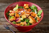 Field greens, gorgonzola cheese, grilled chicken, red grapes, apples, craisins, candied walnuts, non-fat raspberry vinaigrette.