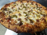 Pepperoni, sausage, mushrooms, onion & green peppers.