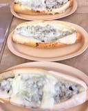 Steak, mushroom, green pepper, onion, cheese and sauce.