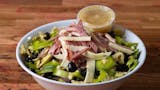 Lettuce blend, sliced red onion, cucumber black olive, green bell pepper, roasted artichoke provolone, salami, italian dressing.