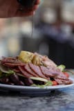 Mixed greens, imported salami, ham, provolone and mortadella with tomatoes, red onions, kalamata olives. Served with a house vinaigrette dressing.