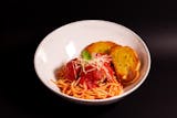 Spaghetti & meatballs, marinara sauce, Parmigiano Reggiano.