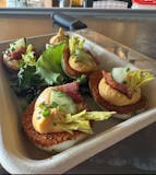 Griddled challah, lightly dressed blue crab, avocado, tomato, butter lettuce, chile salt.