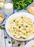 Tortellini made with ham, bacon, and alfredo.