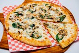 White Alfredo sauce, spinach, mushroom, and mozzarella cheese.