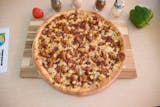 Marinated chicken, BBQ sauce, pineapple, crispy bacon, and mozzarella cheese.