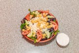 Mixed greens, fresh Roma tomatoes, cucumber, cheese, croutons & oregano.