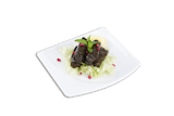 Beef, red onion, tomatoes, tzatziki sauce, spring mix.