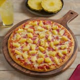 Original crust, red sauce, cheese, Canadian bacon, pineapple.
