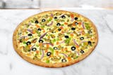Mushrooms, green pepper, onions, black olives & tomato topped with Italian spices.
