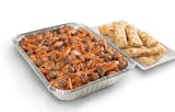 Penne Rigati, All-Natural Grilled Chicken, Mushrooms, Black Olives, Mozzarella Cheese, all tossed in our Creamy Pesto Sauce, and served with a regular cheezee garlic bread. Serves about 10.