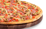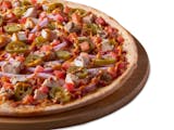 Signature red tomato sauce on our original crust, topped with mozzarella cheese, pepperoni, salami, Canadian bacon, smoked bacon, and Italian sausage.