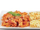 Penne Rigati and Italian Sausage tossed in our Homemade Red Tomato Sauce. Topped with Mozzarella Cheese, basil seasoning, and served with a regular cheezee garlic bread. Serves about 10.