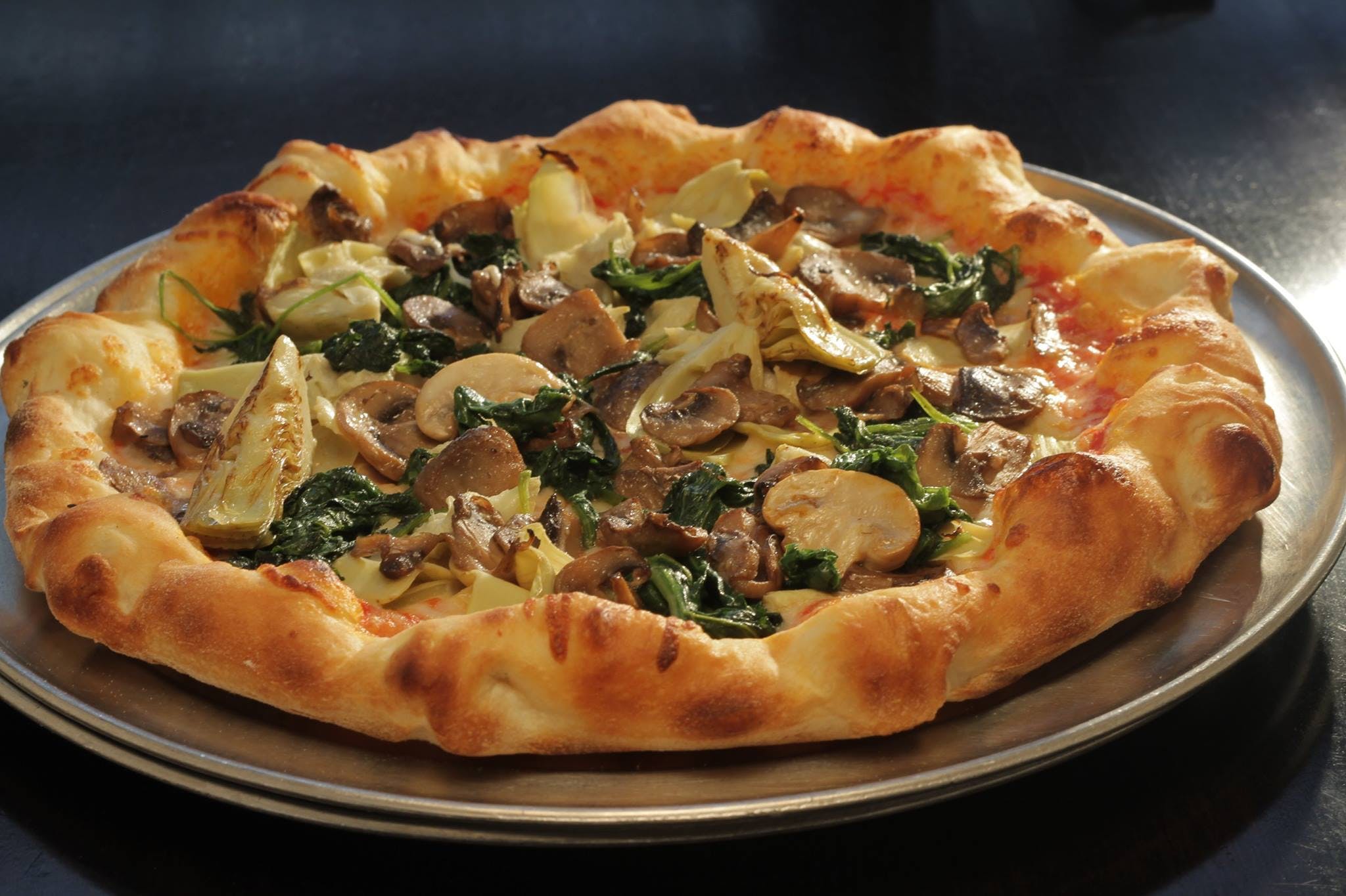 Tomato, mozzarella, black olives, mushrooms artichokes.
