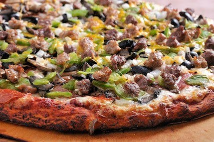Salami, pepperoni, mushroom, olive, green pepper, onion, ground beef, Italian sausage.