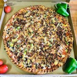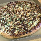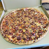 Topped with BBQ sauce, mozzarella, and chicken meat.