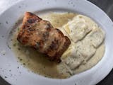 Chunks of fresh salmon sauteed in butter, olive oil, & garlic, then tossed in creamy garlic alfredo sauce