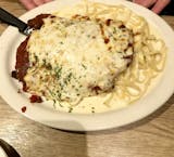 Lightly breaded with marinara and mozzarella cheese. Served with spaghetti.