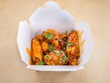 Chicken, mango, chipotle sauce, red onion, lime, and cilantro.