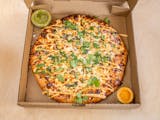 Fresh tomato sauce, slow cooked black beans, chorizo and flavory bacon, jalapeno pepper, freshly diced red onion, and top with fresh cilantro.