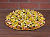 A traditional combination. Our legendary pepperoni, Italian sausage, mushrooms, black olives, bell peppers, onions, and diced tomatoes on our classic red sauce.