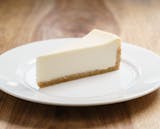 A slice of cheesecake factory’s famous original and creamy cheesecake with a graham cracker crust.