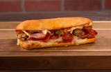 An open-faced pizza sandwich on a fresh roll with pizza sauce, mozzarella cheese & your choice of up to three pizza toppings. Served with chips.