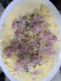 Fettuccine tossed in alfredo sauce with ham. One of our favorites! Served with choice of soup or salad and garlic or focaccia bread.