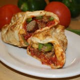 Served with French fries. Meatballs, marinara sauce, bell peppers, melted cheese.