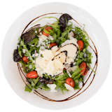 Seasonal greens, baby arugula, grape tomatoes, parmigiano reggiano, and balsamic vinaigrette dressing.